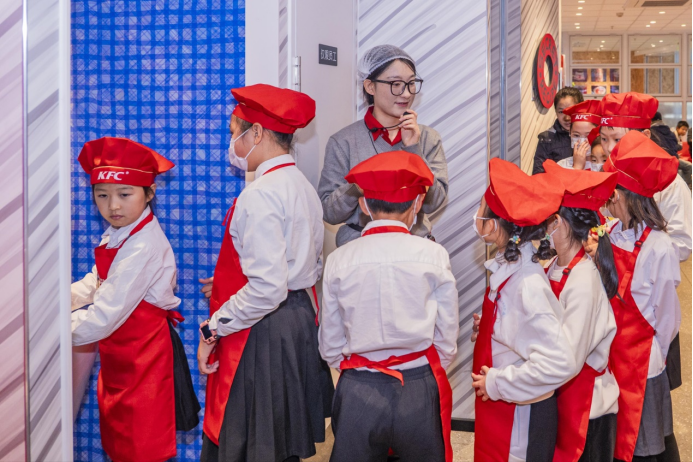 沈阳星摩尔肯德基主题餐厅这个周末过的特别热闹,孩子们戴上围裙、厨帽、口罩,认真洗手之后,就迫不及待地走进了“好厨房”,开启了一场沉浸式的探索之旅。从清洁区、冷藏区、解冻区、烹炸区、组装区,到柜台区,一路走过来,相当于穿行了一条肯德基的“汉堡时光赛道”,孩子们明白了“时间”如何成为食品安全的守护神,每一个环节都在与时间赛跑,厨房工作人员严格地管理着每一分每一秒,守护着食材的新鲜与美味的口感,更是守护顾客的健康和安全。