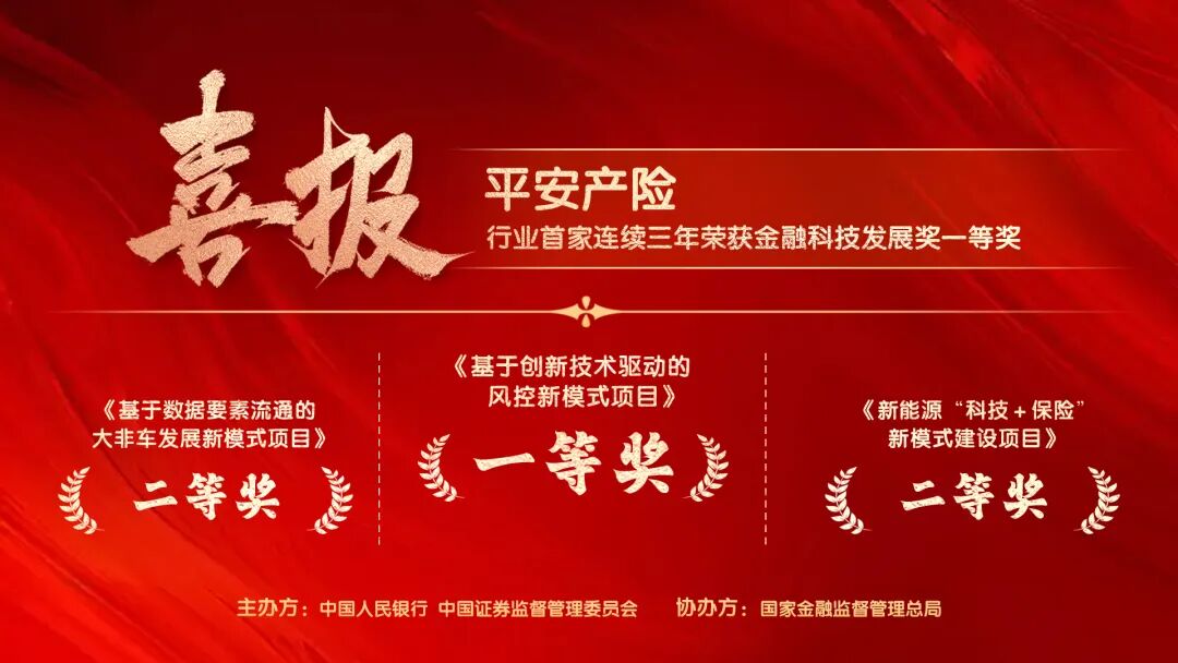 近日,中国人民银行正式公布“2024年度金融科技发展奖”获奖名单。平安产险携手平安科技共同打造的《基于创新技术驱动的风控新模式》在681个项目中脱颖而出,荣获“金融科技发展奖一等奖”。这是继2022年度、2023年度摘得一等奖后,平安产险再度斩获金融科技发展奖一等奖,成为行业首家连续三年荣获一等奖的保险公司。同时,平安产险联合平安科技和壹账通分别申报的《基于数据要素流通的大非车发展新模式》、《新能源“科技+保险”新模式建设项目》荣获二等奖。