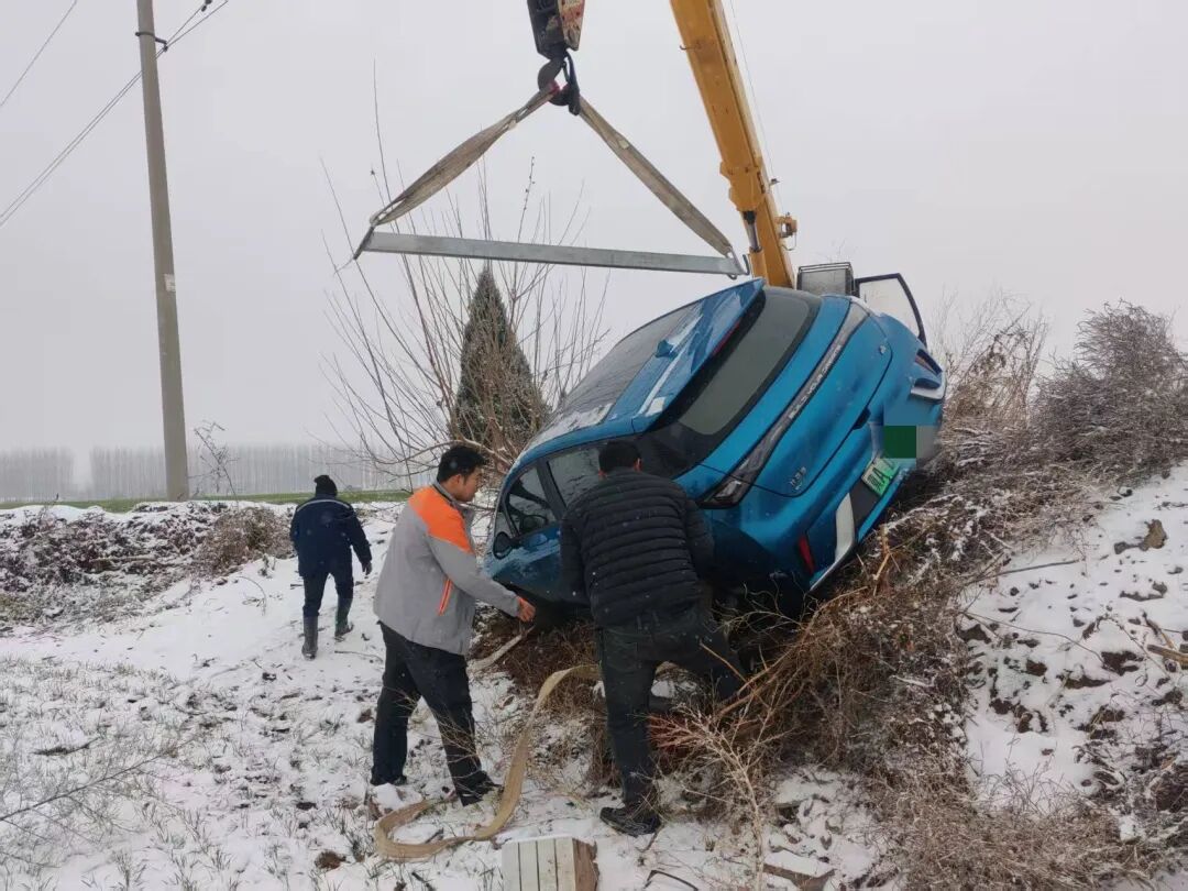 一小轿车因雪天路面湿滑不慎发生侧翻,平安产险河北分公司理赔员接到电话后,第一时间联系救援车辆赶至现场,对受困车辆进行施救。