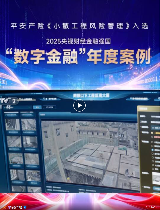 近日,中央广播电视总台“2025央视财经金融强国年度盛典”在北京成功举办。活动围绕金融“五篇大文章”,聚焦深化金融体制改革、金融高水平开放等重大战略方向,现场揭晓了17个“2025央视财经金融强国年度案例”,并发布“2025央视财经金融强国发展报告”,展示了金融服务实体经济和高质量发展的创新实践。其中,由平安产险打造的《小散工程风险管理》项目,凭借创新的“AI+安责险+多方联动”模式,成功入选“数字金融”年度案例。