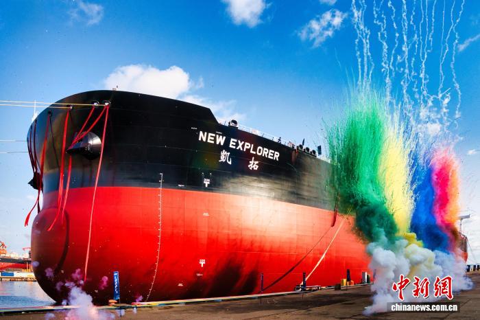 中国船舶集团旗下大连造船为招商轮船建造的甲醇双燃料动力智能超大型油轮(VLCC)“凯拓”轮,22日在辽宁大连交付,这是全球首艘甲醇双燃料动力超大型油轮。