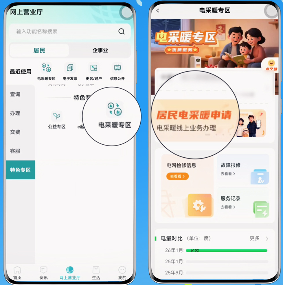 一是线上办理。打开“网上国网”APP,在首页找到电采暖套餐办理入口,按提示操作即可。