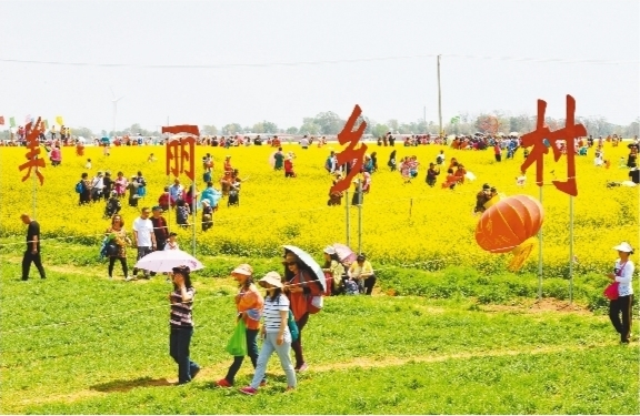 高家岭镇宋斗村村民好幸福。不仅家家户户通了自来水,村中心154户农家还有了室内水冲厕所,村巷地下下水管道长5000余米,院内再无熏人的旱厕味;出门再也不是一脚泥,水泥路修到了家门口;屯里杂草杂树消失了,取而代之的是彩砖步道、文化墙、集中连片的油菜花田和油葵林。村部的墙上,悬挂着全村300户农家选送的300人自拍笑脸,幸福宋斗跃然纸上。