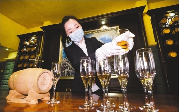 桓仁冰酒色泽纯正、酒香醇厚,深受消费者喜爱。本版图片由本报记者郑磊摄