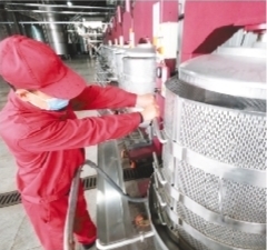 五女山米兰酒业有限公司工人在检修设备。