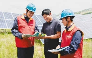用绿色能源推动乡村振兴,辽宁省各供电公司纷纷建立光伏项目服务机制,开辟供电服务“绿色通道”,安排专人主动上门对接客户需求,定期对光伏发电设备进行巡视检查、红外测温等全方位“体检”,做好项目并网后的跟踪服务,保障光伏设备发电效率,持续做好新能源并网消纳工作。图为7月20日,国网营口供电公司党员服务队在盖州市九寨镇惠风光伏电站排查安全隐患,讲解常见故障处理方法。于兴涧 记者 刘大毅 文并摄