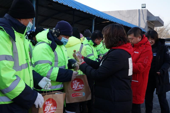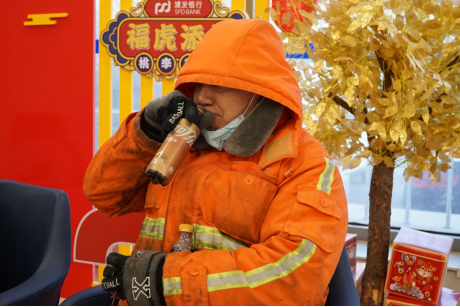 12月31日清晨,2021年的最后一天。天还没亮,浦发银行浑南支行厅堂内,“暖城计划”的志愿者们如往常一样,已开始热火朝天的忙活起来。他们将一包包热乎乎的爱心早餐装盒封口打包、从“温暖驿站”暖柜取出可口可乐生姜+热饮,连同一份份暖冬礼包一起装车出发,来到浑南环卫站点。赶在新年之际,将这一份份热气腾腾的“敬意”送到那些起早贪黑的环卫工人手中。