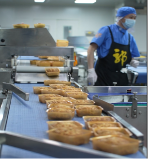 在鲜虾叉烧王、瑶柱叉烧王等新品走红拼多多之际,郭师傅月饼投产不久的四万平方米新工厂也进入“满负荷”运转状态。据企业传承人郭宇航介绍,在去年中秋节的高峰期工厂有近千名工人同时作业,带动月饼日产能突破四十万颗。