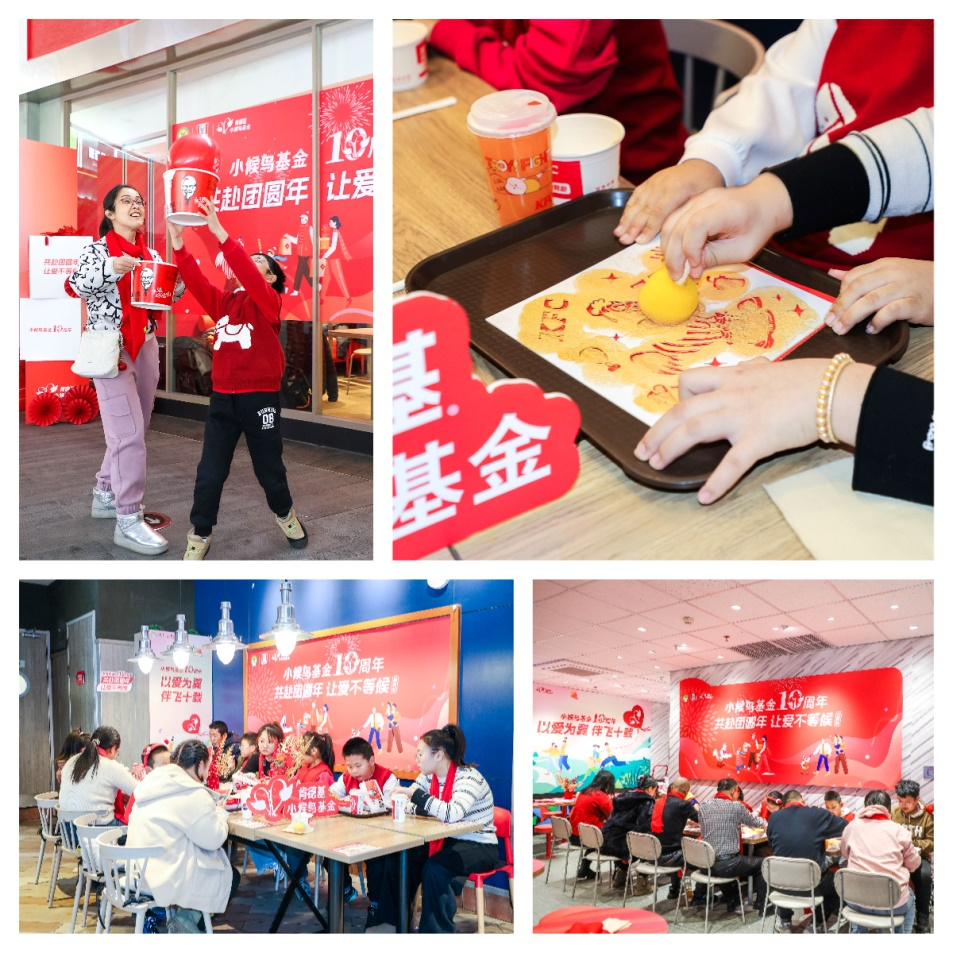 2016年,肯德基携手中国儿童少年基金会成立肯德基小候鸟基金,长期呵护留守、流动和困境儿童的成长。今年,恰逢肯德基小候鸟基金成立十周年。作为十周年系列活动的暖心开篇,此次新春“共赴团圆年,让爱不等候”主题公益行动,不仅延续了十年来对“小候鸟”群体始终如一的关爱承诺,更立足留守、困境儿童的差异化需求,助力“小候鸟”外出务工的父母踏上归乡之路,将远方的牵挂化作眼前实实在在的拥抱。同时,在全国23个城市,邀请“小候鸟”家庭欢聚肯德基餐厅,通过“小候鸟欢聚游园会”丰富多彩的民俗体验和妙趣横生的游戏互动,为“小候鸟”们编织一段洋溢着欢声笑语与浓浓年味的幸福时光。