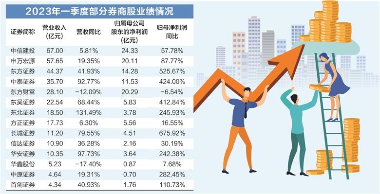 从一季度营收来看,中信建投、申万宏源、东方证券目前暂居前三,分别为67亿元、57.65亿元、44.37亿元。从营收同比增幅来看,东北证券今年一季度实现18.5亿元营收,同比大增131%;华安证券、中泰证券营收同比增幅超90%,长城证券营收同比增长约80%。