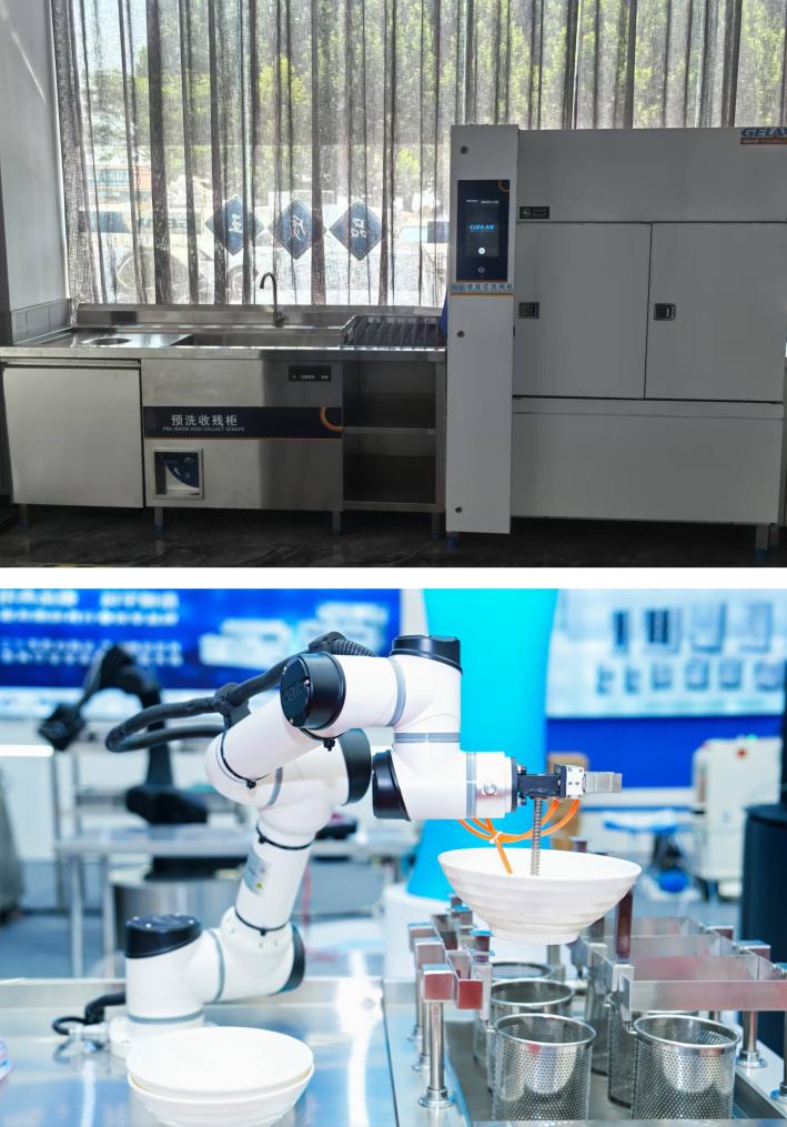 上图为通道式洗碗机;下图为自动面条机。新华社发